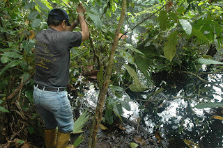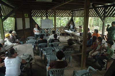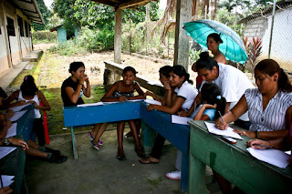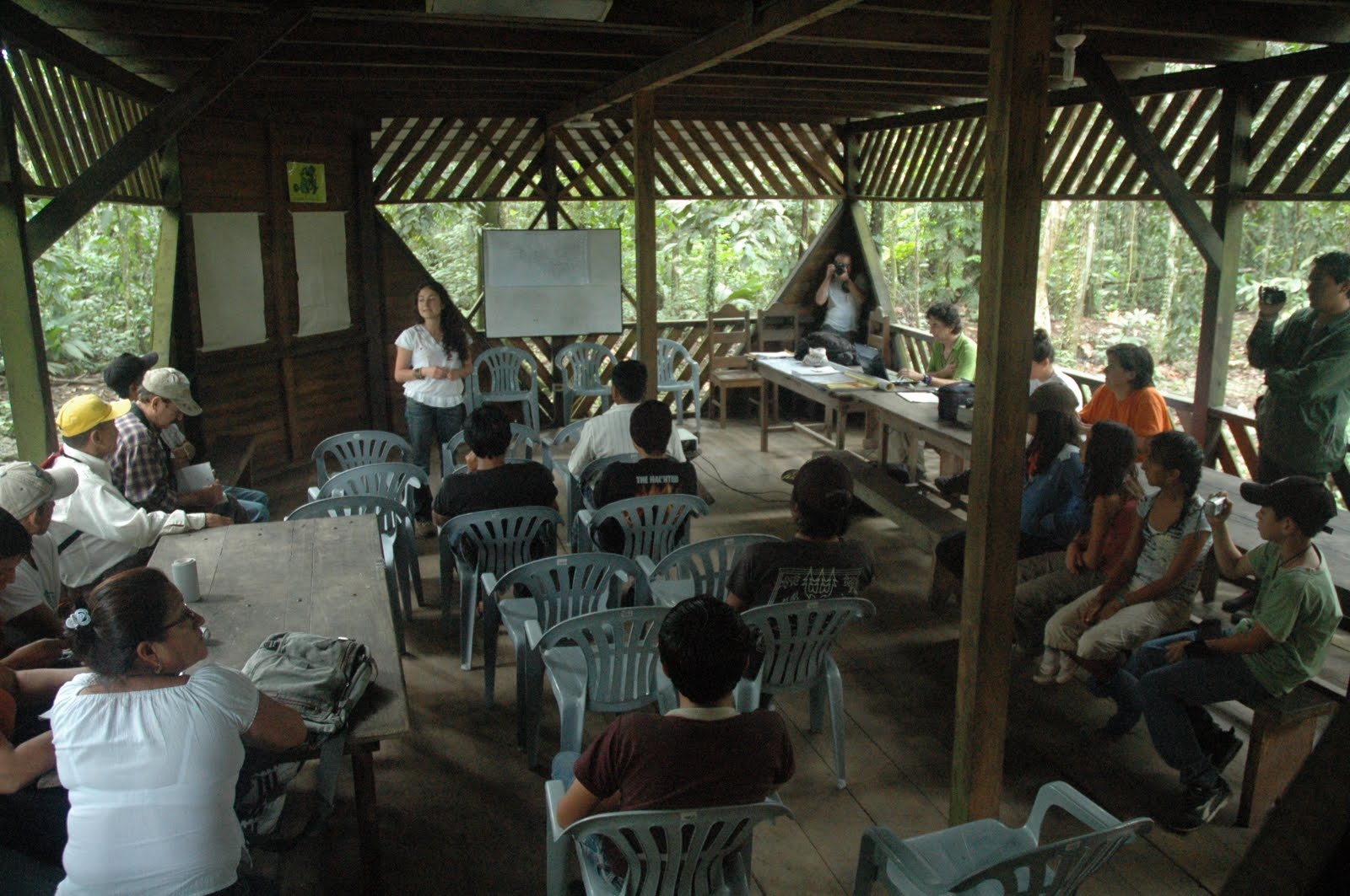 Tan importante como todo lo anterior, son las actividades de cohesión y sensibilización. A pesar del voluntarismo de todos los mencionados, la mayoría de los campesinos están desactivados, y desanimados. Líderes comunitarios como Manuel y Carlos hacen un gran esfuerzo por cohesionar a los miembros de sus comunidades, y dotarlos de herramientas para defender sus derechos. En su día, el gobierno dio cincuenta hectáreas gratis a cada persona que quisiera colonizar la zona, para revestir de poblaciones la actividad petrolera y, sospecho, reducir la presencia indígena. Hoy, ante los graves problemas de contaminación, el gobierno está comenzando a hablar de reubicación. En la selva a la gente se la puede llevar y traer como si fuesen maletas. Las máquinas extractoras, los tubos de plomo y los mecheros permanecerán.